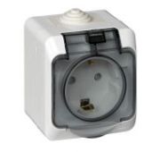 Розетка 1-м ОП Этюд 16А IP44 250В с заземл. защ. шторки с крышкой бел. SE PA16-044B