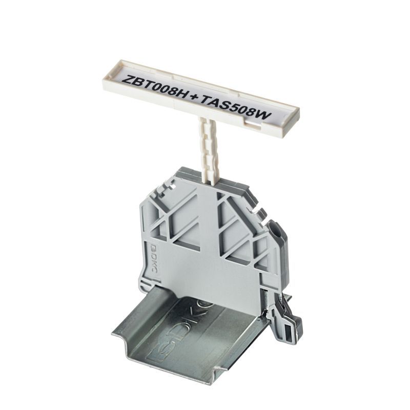 Торцевой фиксатор с пружинным зажимом, из полиамида серого цвета толщиной 5 мм на DIN-рейку OMEGA 3 предназначен для фиксации и разделения клеммы на рейке. Может нести групповую маркировку клеммного ряда с держателем маркирвоки ZBT008H.